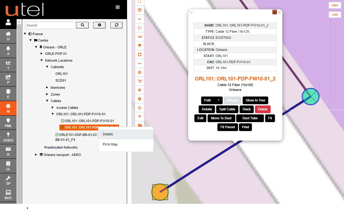 The Cable will show in the Tree, along with the Joint Closures created in the relevant Manholes.