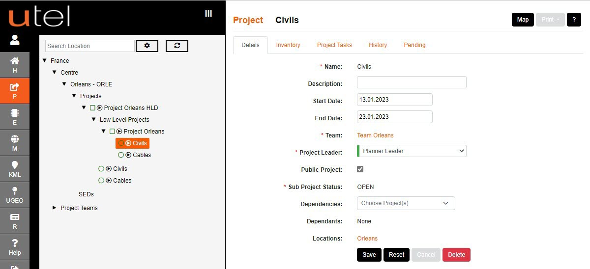 The project is broken up into separate Civil sub-projects; Manholes, Cabinets, Poles, DP, NT, Microwave, ONT, Ducts and Trenches.