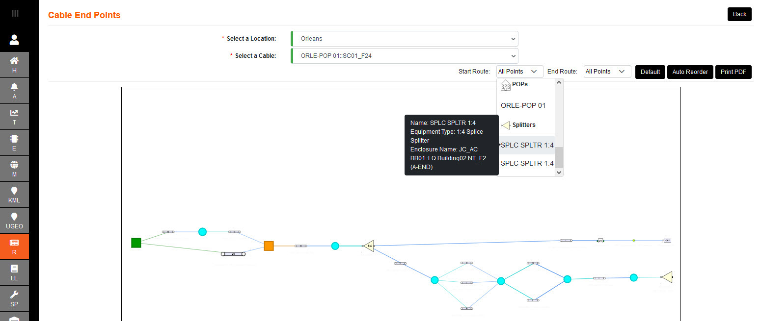 You can choose a cable in order to see where is originates, and where it will lead to.